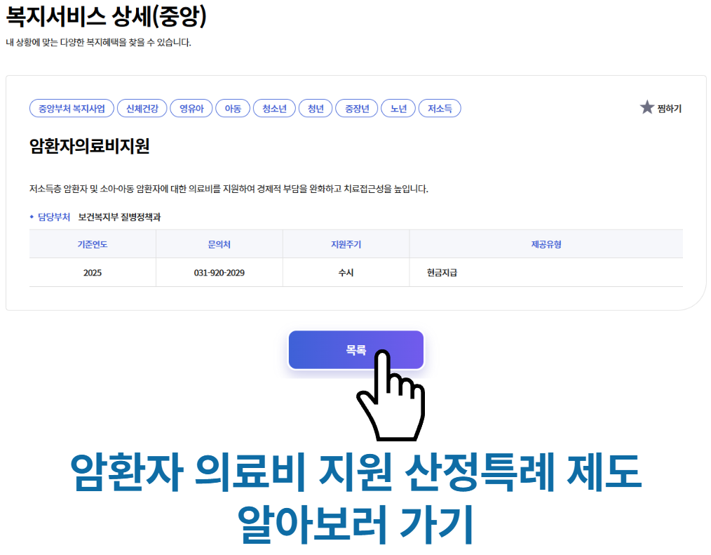 암환자 의료비 지원 산정특례 제도 지원대상과 금액